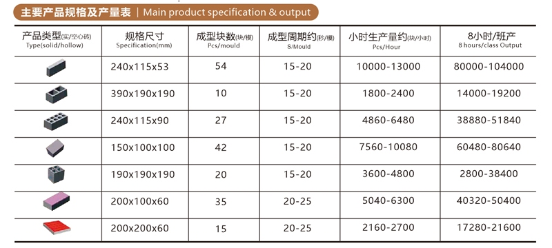 磚數(shù)量(塊/8h) 133440-207360 2.3KG/塊