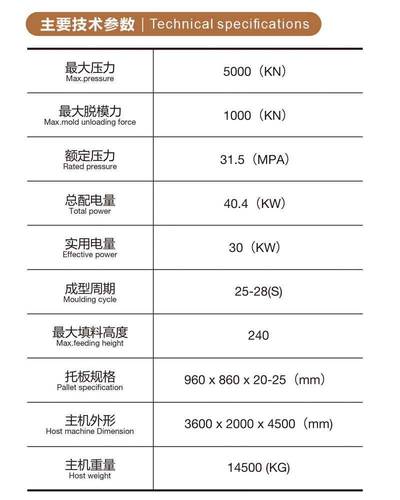 最大壓力 (KN) | 5000 | 成型周期 (s) | 25-28 |